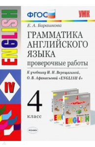 Английский язык. 4 класс. Грамматика. Проверочные работы к учебнику И.В. Верещагиной и другие ФГОС  Авторы: Барашкова Елена Александровна Издательство: Экзамен Английский язык. 4 класс. Грамматика. Проверочные работы к учебнику И.В. Верещагиной и другие ФГОС "Данное пособие полностью соответствует федеральному государственному образовательному стандарту (второго поколения) для начальной школы. Оно представляет собой четвёртый компонент учебного комплекта, состоящего из четырёх книг: