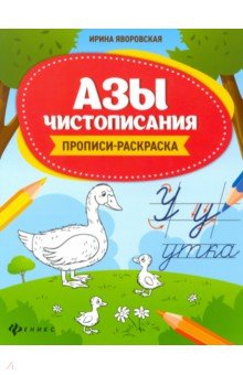 Азы чистописания. Прописи-раскраска  Авторы: Яворовская Ирина Алексеевна Издательство: Феникс Азы чистописания. Прописи-раскраска "Книга посвящена важной теме - знакомству с русским алфавитом и начальному этапу подготовки руки ребенка к письму. Прописи составлены в виде увлекательной игры, в которой детям надо будет раскрашивать рисунки, запоминать стихи, знакомиться с новыми понятиями, выучить буквы.