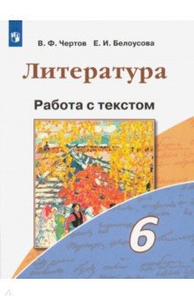 Литература. 6 класс. Работа с текстом  Авторы: Чертов Виктор Федорович, Белоусова Елена Ивановна Издательство: Просвещение Литература. 6 класс. Работа с текстом "Учебное пособие поможет учащимся шестых классов организовать самостоятельную работу с учебником и дополнительными источниками, повторить изученный материал и систематически контролировать свои успехи в овладении искусством чтения.