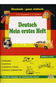 Моя первая тетрадь по немецкому языку  Авторы: Богданова Наталья Николаевна, Крячина Светлана Издательство: Корона-Принт Моя первая тетрадь по немецкому языку "Данная тетрадь знакомит детей с буквами немецкого алфавита и их написанием, с правилами произношения звуков и их сочетаний. В ней даются простейшие модели устной речи и правила построения немецкого предложения. Занимательные упражнения и веселые рисунки помогут освоению языка на ранней стадии его изучения.