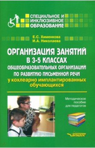 Организация занятий в 3-5 классах общеобразовательных организаций по развитию письм. речи. Мет. пос.  Авторы: Хименкова Елена Сергеевна, Николаева Ирина Александровна Издательство: Владос Организация занятий в 3-5 классах общеобразовательных организаций по развитию письм. речи. Мет. пос. "Методическое пособие предлагает систему работы с детьми с кохлеарной имплантацией по формированию и развитию у них самостоятельной устной и письменной речи в условиях инклюзивного образования в тех образовательных организациях, где созданы возможности для коррекционной помощи таким детям.