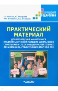 Практический материал для проведения мониторинга предметных умений младших школьников с наруш. слуха  Авторы: Беликова Елена Геннадьевна, Мизернова Инна Геннадьевна, Шаповалова Анастасия Юрьевна, Шеховцова Ирина Степановна Издательство: Владос Практический материал для проведения мониторинга предметных умений младших школьников с наруш. слуха "В пособие включены диагностические материалы для оценки результатов изучения различных предметов младшими школьниками с нарушением слуха и определения эффективности процесса их обучения в общеобразовательных организациях, реализующих ФГОС НОО ОВЗ слабослышащих и позднооглохших обучающихся. Пособие состоит из материалов по: