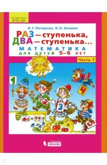 Раз - ступенька, два - ступенька... Математика для детей 5-6 лет. Часть 1. ФГОС ДО  Авторы: Петерсон Людмила Георгиевна, Холина Надежда Павловна Издательство: Просвещение, Бином Раз - ступенька, два - ступенька... Математика для детей 5-6 лет. Часть 1. ФГОС ДО "Пособие является составной частью комплекта ""Раз - ступенька, два - ступенька..."" для детей 5-6 и 6-7 лет. В комплект также входят программа и методические рекомендации, в которых описана система работы по формированию у дошкольников математических представлений, развитию мышления, творческих способностей, интереса к математике.