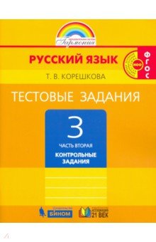 Русский язык. 3 класс. Тестовые задания. В 2-х частях. Часть 2. ФГОС    Авторы: Корешкова Татьяна Вениаминовна  Издательство: Просвещение, Бином  Русский язык. 3 класс. Тестовые задания. В 2-х частях. Часть 2. ФГОС  "Цель сборника тестовых заданий - помочь учителю оперативно организовать проверку сформированности у учащихся как предметных умений по различным разделам курса русского языка, так и универсальных учебных действий, предусмотренных ФГОС.