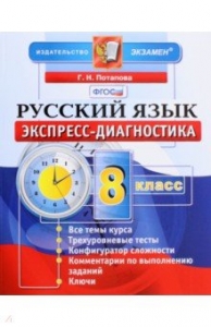 Русский язык. 8 класс. Экспресс-диагностика. ФГОС  Авторы: Потапова Галина Николаевна Издательство: Экзамен Русский язык. 8 класс. Экспресс-диагностика. ФГОС "Пособие содержит по два варианта тестовых заданий по всем темам курса русского языка для экспресс-диагностики уровня освоения школьниками программы 8-го класса (а также ранее изученного материала).