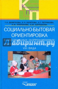 Социально-бытовая ориентировка в специальных (коррекционных) образоват. учрежд. VIII вида  Авторы: Девяткова Татьяна Александровна, Кочетова Людмила Львовна, Петрикова Алла Геннадиевна, Платонова Нина Михайловна, Щербакова Анна Михайловна Издательство: Владос Социально-бытовая ориентировка в специальных (коррекционных) образоват. учрежд. VIII вида "В пособии рассматриваются вопросы теории и практики социально-бытовой ориентировки учащихся 5-12 классов специальных (коррекционных) образовательных учреждений VIII вида. В помощь учителю предлагаются примерное тематическое планирование, методические рекомендации к урокам по некоторым разделам программы социально-бытовой ориентировки. Даны примерные программы курса СБО для учащихся 10-12 классов.