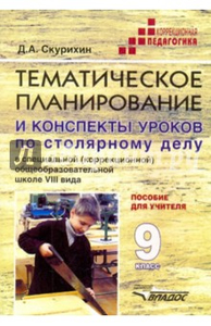 Тематическое планирование и конспекты уроков по столярному делу в школе VIII вида. 9 класс  Авторы: Скурихин Дмитрий Анатольевич Издательство: Владос Тематическое планирование и конспекты уроков по столярному делу в школе VIII вида. 9 класс "В пособии приводится планирование программного материала по столярному делу в 9 классах специальной (коррекционной) школы VIII вида.