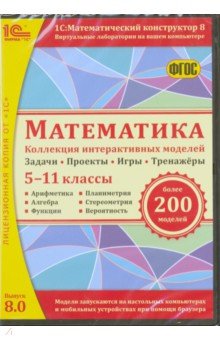 Математика. 5-11 классы. Коллекция интерактивных моделей. ФГОС (CDpc)  Авторы: Дубровский В. Н., Лебедева Н. А., Булычев В. А. Издательство: 1С