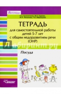 Тетрадь для самостоятельной работы для дет 5-7 с ОНР. "Посуда"