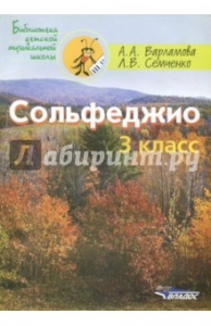 Сольфеджио 3 класс. Пятилетний курс обучения. Ноты. Учебное пособие для учащихся музыкальных школ  Авторы: Варламова Алла Аркадьевна, Семченко Лариса Викторовна Издательство: Владос