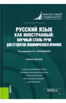 Русский язык как иностранный. Научный стиль речи для студентов экономического профиля. Учебное пос.