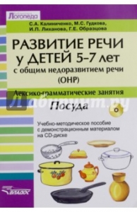 Развитие речи у детей 5-7 лет с общим недоразвитием речи (ОНР). Лексико-грамм. занятия. Посуда (+CD)