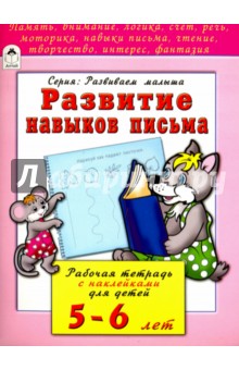 Развитие навыков письма. Рабочая тетрадь с наклейками для детей 5-6 лет