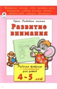Развитие внимания. Рабочая тетрадь с наклейками для детей 4-5 лет