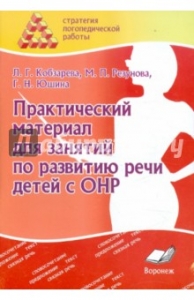 Практический материал для занятий по развитию речи детей с ОНР. Практическое пособие для логопедов  Авторы: Кобзарева Лариса Андреевна, Резунова Марина Петровна, Юшина Галина Николаевна Издательство: ИП Лакоценина