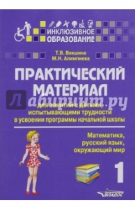Практический материал для занятий с детьми, испытывающими трудности с программой нач. школы. 1 класс  Авторы: Векшина Татьяна Владимировна, Алимпиева Мария Николаевна Издательство: Владос