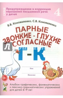 Парные звонкие - глухие согласные Г-К. Альбом упражнений для детей 6-9 лет  Авторы: Коноваленко Вилена Васильевна, Коноваленко Светлана Владимировна Издательство: Гном