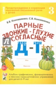 Парные звонкие - глухие согласные Д-Т. Альбом упражнений для детей 6-9 лет  Авторы: Коноваленко Вилена Васильевна, Коноваленко Светлана Владимировна Издательство: Гном