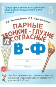 Парные звонкие - глухие согласные В-Ф. Альбом упражнений для детей 6-9 лет  Авторы: Коноваленко Вилена Васильевна, Коноваленко Светлана Владимировна Издательство: Гном