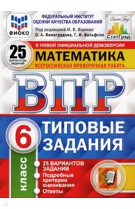 ВПР ФИОКО. Математика. 6 класс. 25 вариантов. Типовые задания. ФГОС  Авторы: Ященко Иван Валериевич, Вольфсон Георгий Игоревич, Виноградова Ольга Александровна Издательство: Экзамен ВПР ФИОКО. Математика. 6 класс. 25 вариантов. Типовые задания. ФГОС "Данное пособие полностью соответствует федеральному государственному образовательному стандарту (второго поколения).