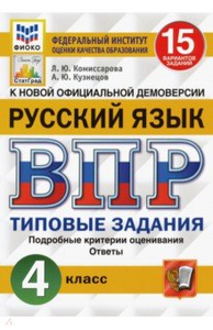 ВПР ФИОКО. Русский язык. 4 класс. 15 вариантов. Типовые задания. ФГОС  Авторы: Комиссарова Людмила Юрьевна, Кузнецов Андрей Юрьевич Издательство: Экзамен ВПР ФИОКО. Русский язык. 4 класс. 15 вариантов. Типовые задания. ФГОС "Данное пособие полностью соответствует федеральному государственному образовательному стандарту (второго поколения) для начальной школы.