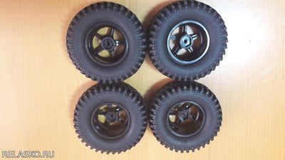 Резина очень мягкая и гребущая, с отличным грунтозацепом. Диски пластиковые черного цвета