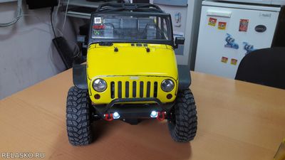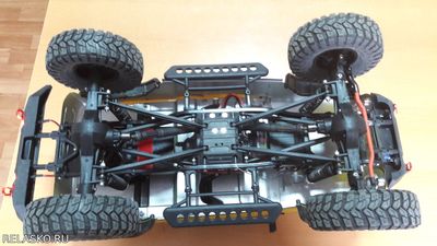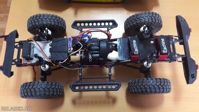 Рулевая серва перенесена на раму. Крыша на модельке снимается. Все мосты залочены, постоянно полный привод.