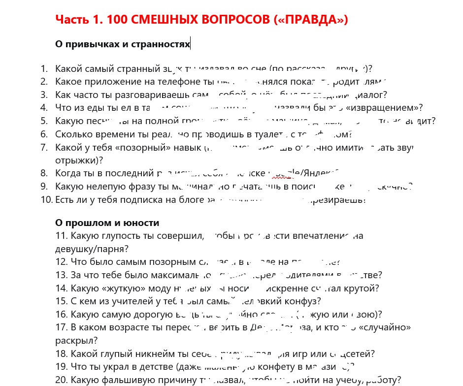 | 200 прикольных вопросов и смешных заданий для игры Правда или Действие - скачать бесплатно Word / Ворд 2026 и распечатать А4