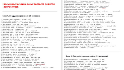 | 250 оригинальных прикольных вопросов для игры «ВОПРОС-ОТВЕТ» скачать бесплатно Word / Ворд 2026 и распечатать А4