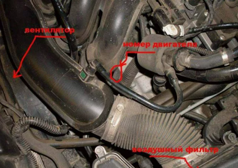 Если стоять перед открытым капотом: 1. Смотрите в пространство между радиатором и двигателем. 2. Найдите место, где мотор соединяется с КПП (с правой стороны от блока цилиндров, если смотреть на него в упор). 3. На вертикальном ребре (фланце) блока, прямо рядом с колоколом коробки передач, выбиты символы.