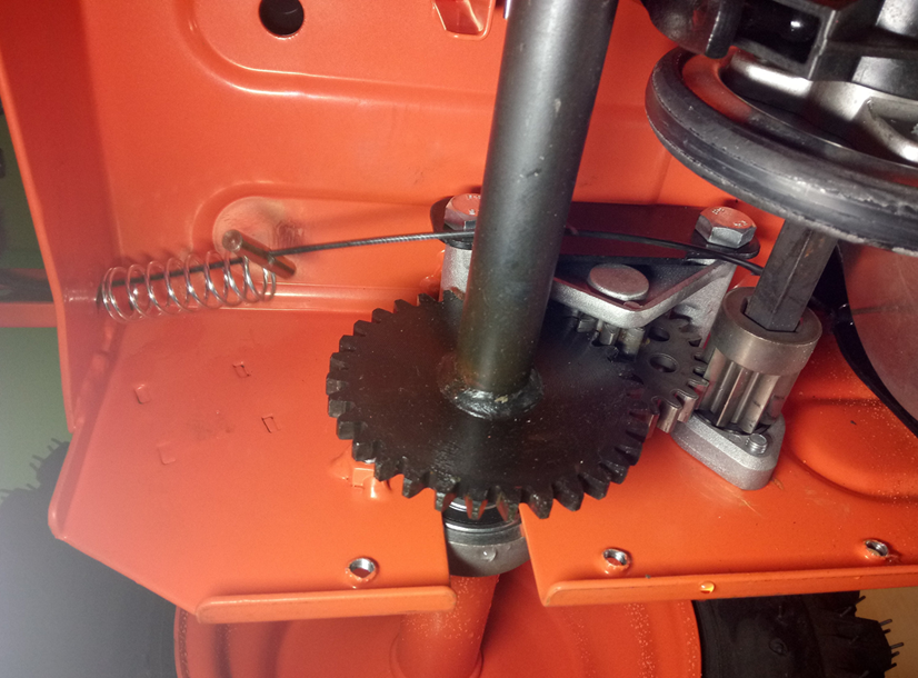 • Решение: Требуется разборка редуктора и замена латунной шестерни. Это самая частая серьезная поломка снегоуборщиков.