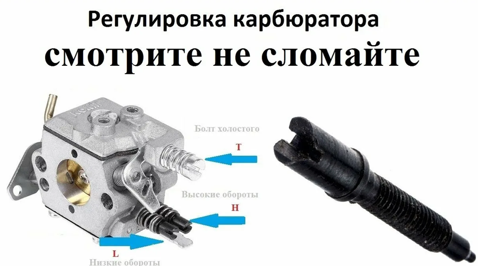 Чтобы пластиковые детали служили дольше, регулируйте карбюратор только после того, как двигатель поработал 5–10 минут. Тепло от цилиндра сделает пластик винта и корпус карбюратора менее хрупкими.