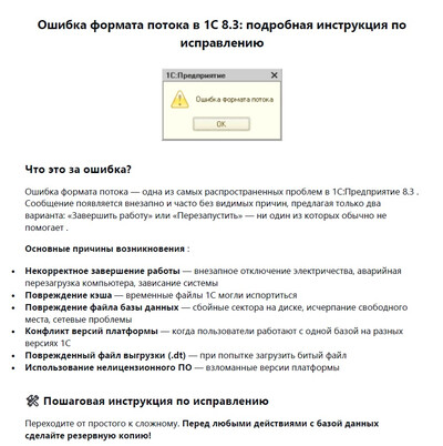 Даны советы по профилактике — чтобы ошибка не возвращалась