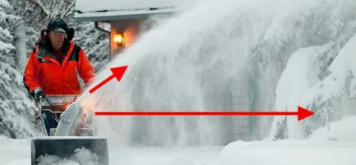 5. Скорость движения (Загрузка шнека) Это звучит странно, но чтобы снег летел далеко, ковш должен быть полным. • Если вы едете слишком медленно, крыльчатка молотит воздух, и снега не хватает для формирования плотной струи. • Попробуйте увеличить скорость движения. Когда крыльчатка плотно набита снегом, он летит единым мощным потоком гораздо дальше.