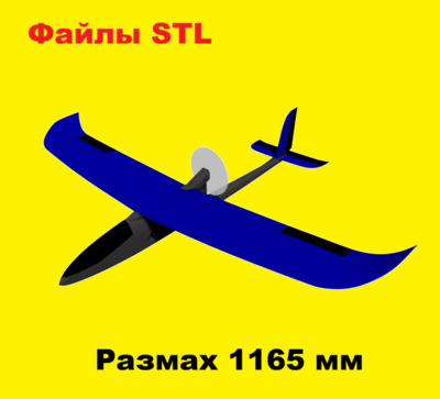 Радиоуправляемый самолет дальнолет с размахом крыла 1165 мм. Файлы STL для изготовления печати на 3D принтере скачать бесплатно