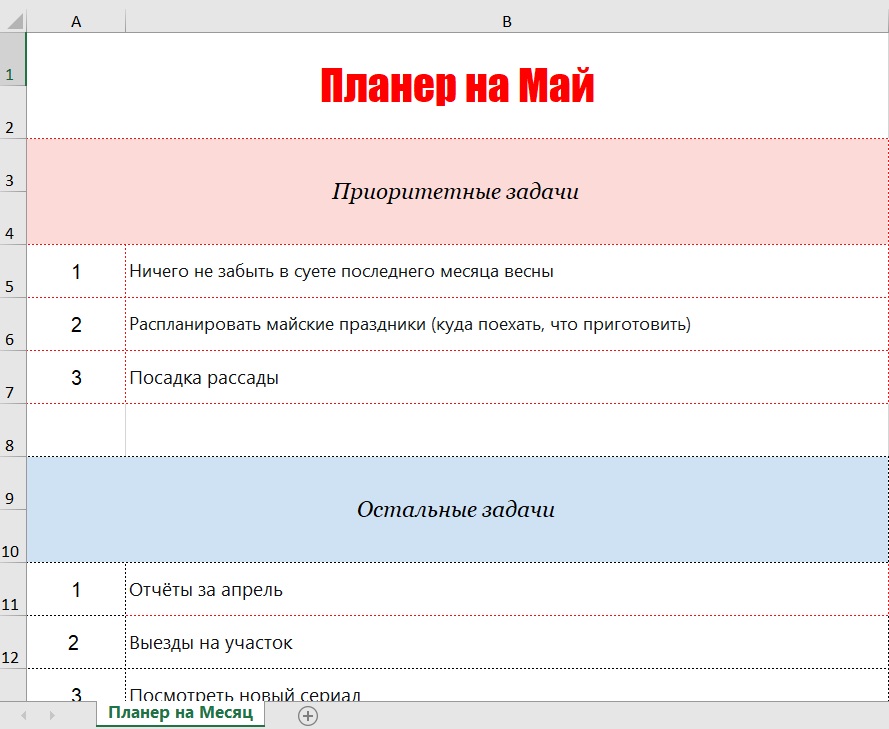 «Планер на месяц в Excel» — это умный шаблон, который поможет вам: