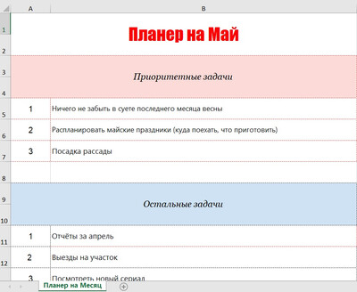Планер на месяц Excel | Календарь задач с приоритетами | Готовые примеры | Скачать и распечатать А4