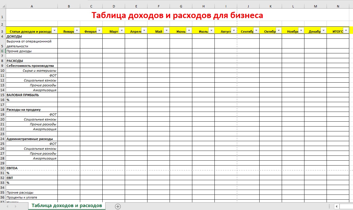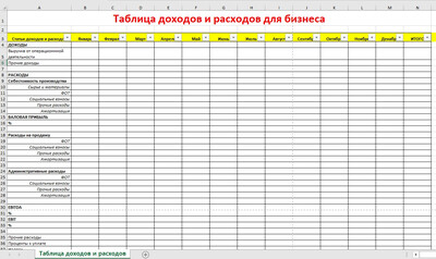 Таблица доходов и расходов для бизнеса шаблон в формате Excel / Эксель, скачать и распечатать
