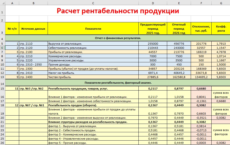 📁 Файл: Расчет рентабельности продукции.xlsx