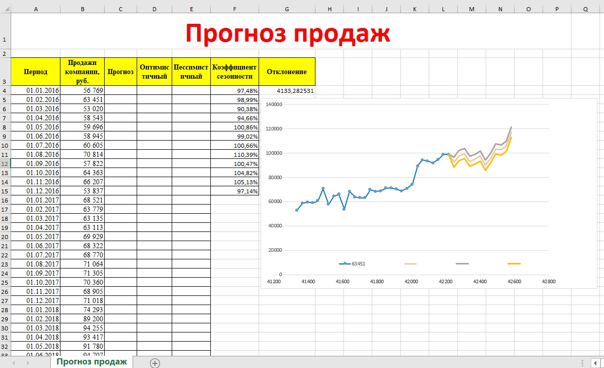 | Прогноз продаж с учетом сезонности - шаблон, таблица с формулами и примерами в формате Excel / Эксель, бесплатно скачать и распечатать