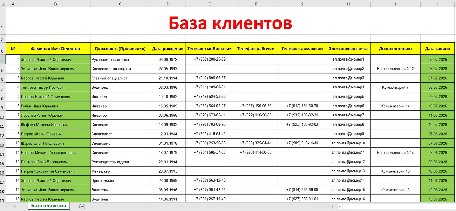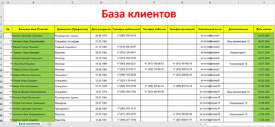 | База клиентов - шаблон, таблица с примерами в формате Excel / Эксель, бесплатно скачать и распечатать