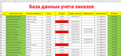 | База данных учета заказов - шаблон, таблица с примерами в формате Excel / Эксель, скачать и распечатать