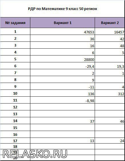 Ответы, задания и решения на РДР 2019 года, 50 регион