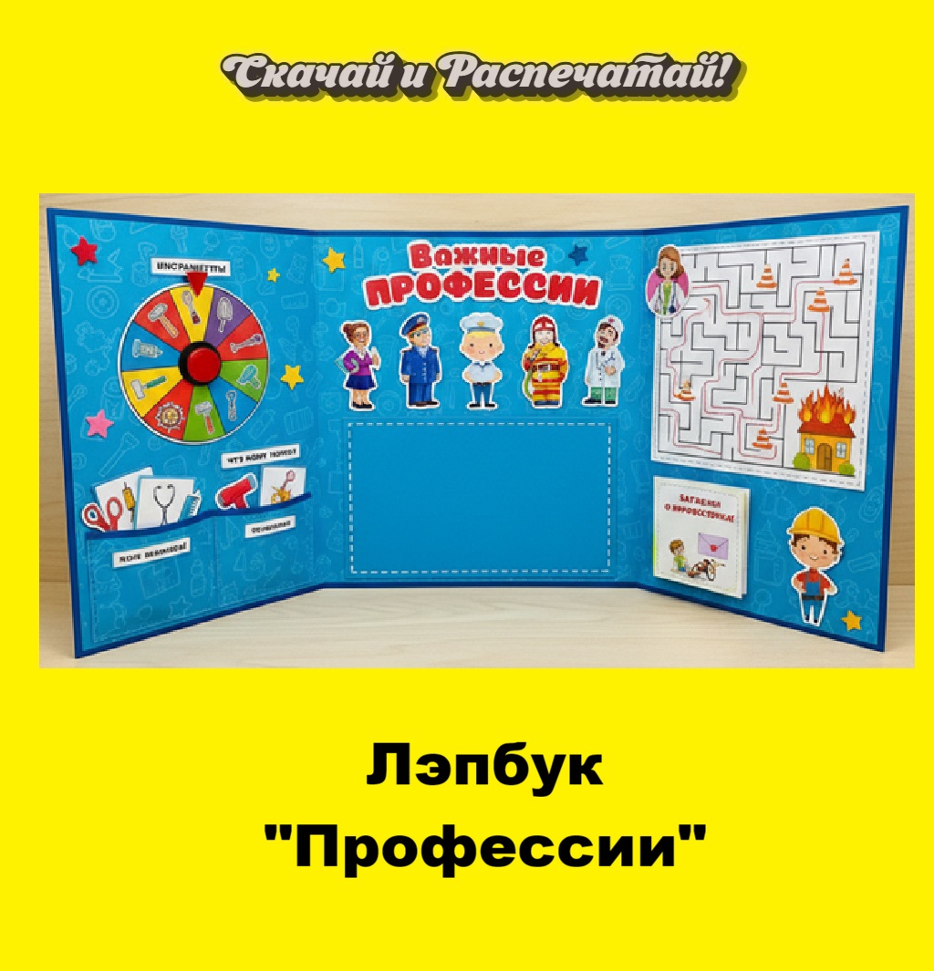 | Лэпбук "Профессии". Готовый шаблон, темы и картинки, дидактическая игра для распечатки - бесплатно скачать и распечатать материалы интерактивного лэпбука, папка для детей дошкольников, файлы в архиве