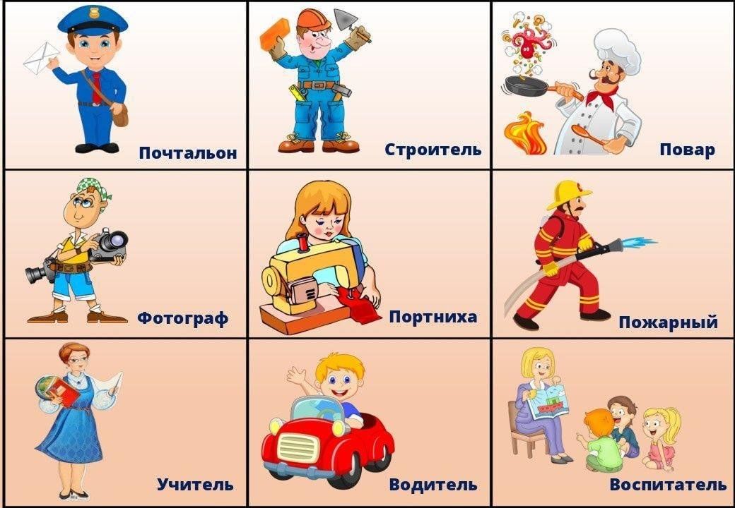 5 основных профессий с иллюстрациями: врач, повар, пожарный, полицейский, строитель (и дополнительные по запросу).