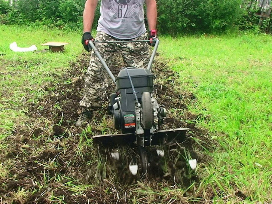 - **Целина с травой** обычно имеет плотный верхний слой с жесткой дерниной и корнями, поэтому работать мотоблоком сложнее, чем на обработанных почвах.