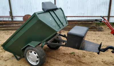 Самосвальный прицеп для мотоблока своими руками. Чертежи и размеры, фото и видео