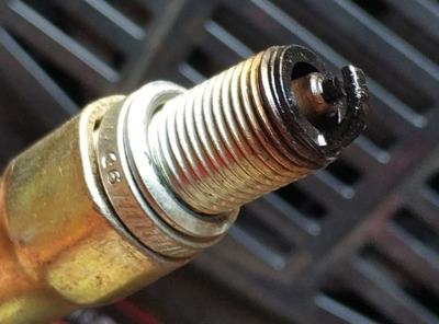 Шаг 1: Проверка свечи • Выкрутите свечу. Если она бархатисто-черная — почистите её металлической щеткой и проверьте зазор. Если нагар очень сильный — замените на новую.