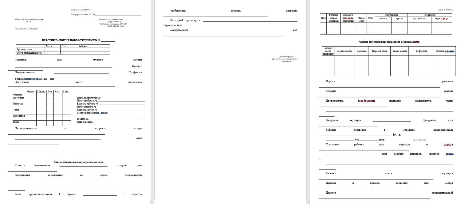 Полноценный шаблон истории развития новорожденного для родильных домов, акушерских и неонатальных отделений.