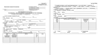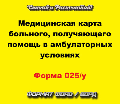 | Медицинская карта больного, получающего помощь в амбулаторных условиях. Медицинская документация. Приложение №1. Учетная форма 025/у - скачать бесплатно Word / Ворд 2026 и распечатать А4